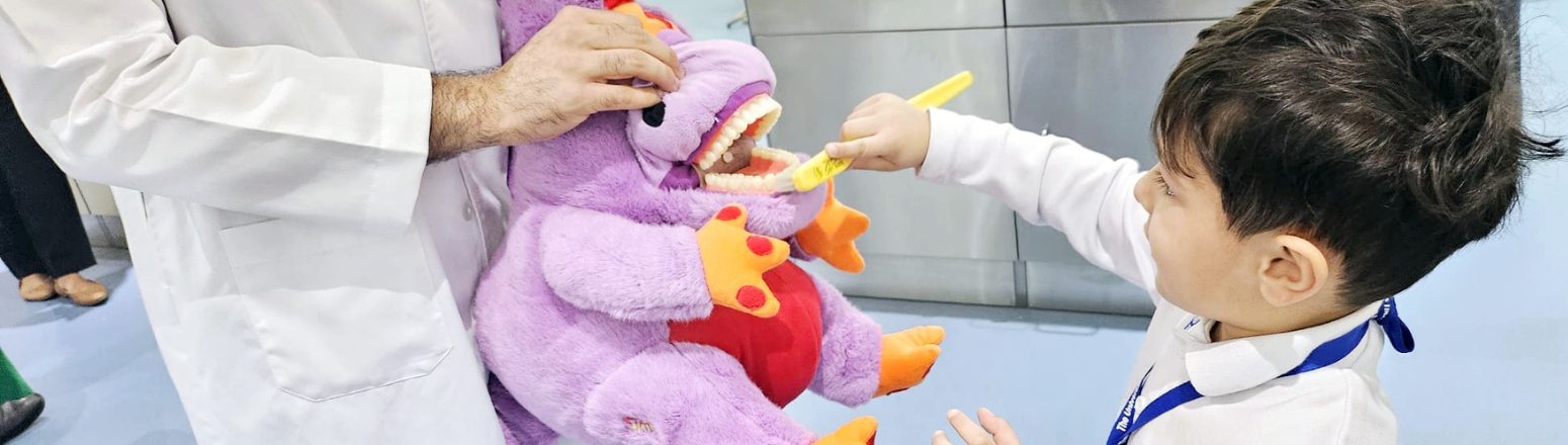 استقبلت كلية طب الأسنان أطفال مرحلة رياض الأطفال من المدرسة الأمريكية العالمية بالكويت UAS ضمن فعاليات برنامج التوعية Inreach للفصل الدراسي الأول، وذلك في عيادات الكلية الكائنة بالحرم الطبي بمنطقة الجابرية.